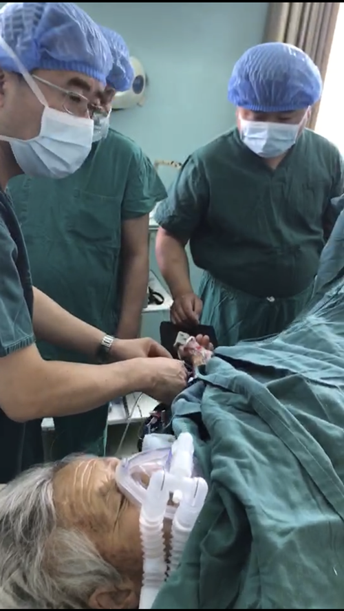 一88岁老太太因右股骨粗隆间粉碎性骨折入住我院骨科后又因急性心肌梗死转至心内科保守治疗,因患者疼痛剧烈,儿孙不忍心。强烈要求手术,告诉医生即使出现意外也无怨无悔,面对病人家属的强烈要求及对我们的信任,经过内科十天的治疗准备,张院长与骨科医生、内科医生、麻醉一起充分交流讨论、制定方案后,在麻醉师的大力支持下,于7月11日进行“右股骨骨折切开复位内固定术”,手术非常顺利成功。